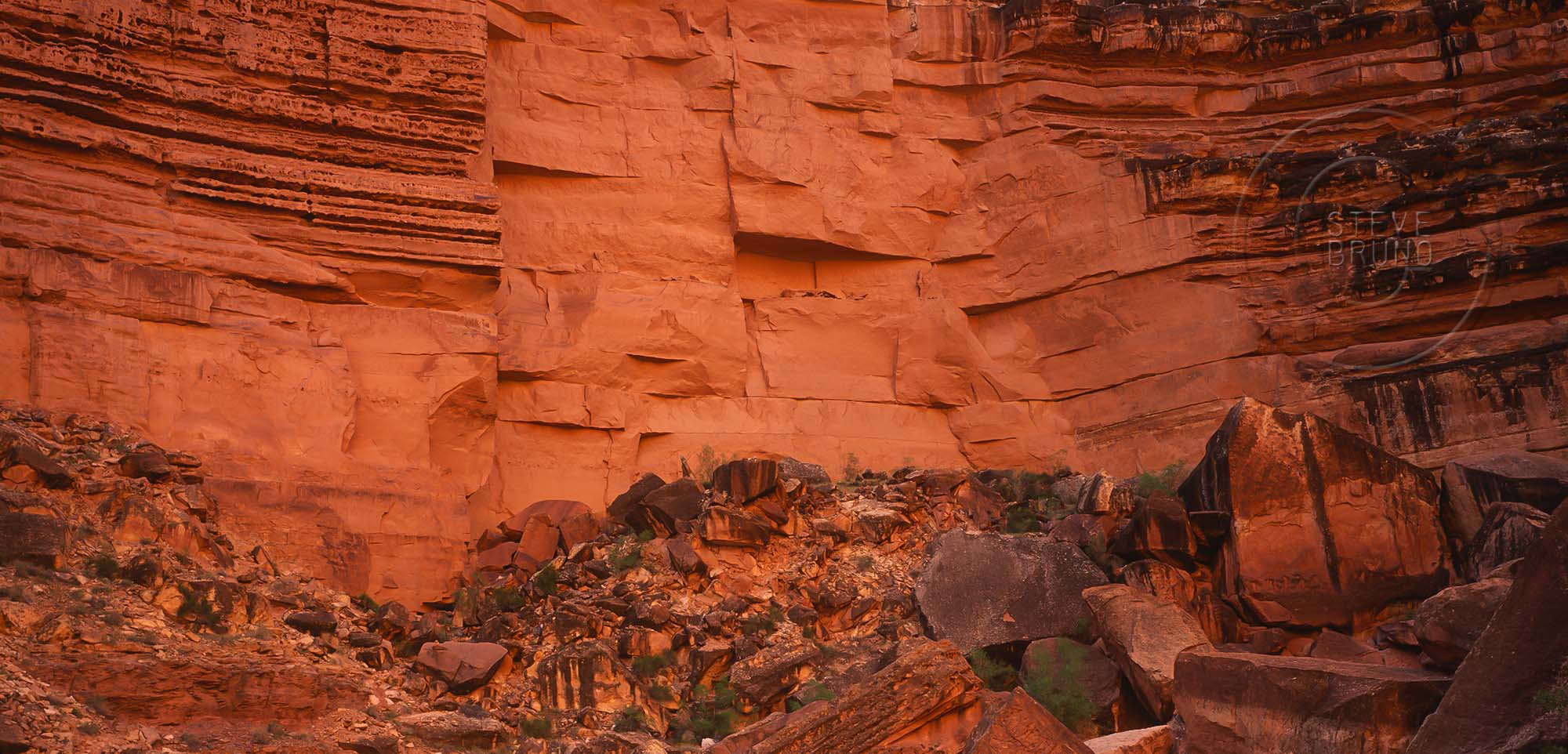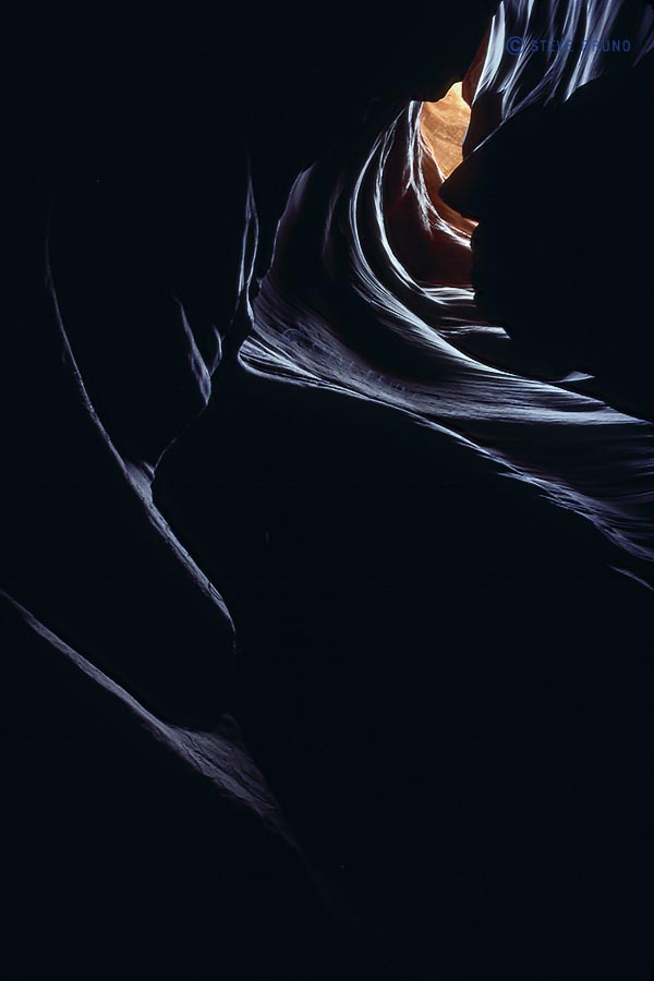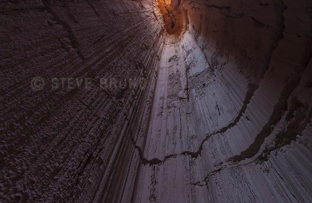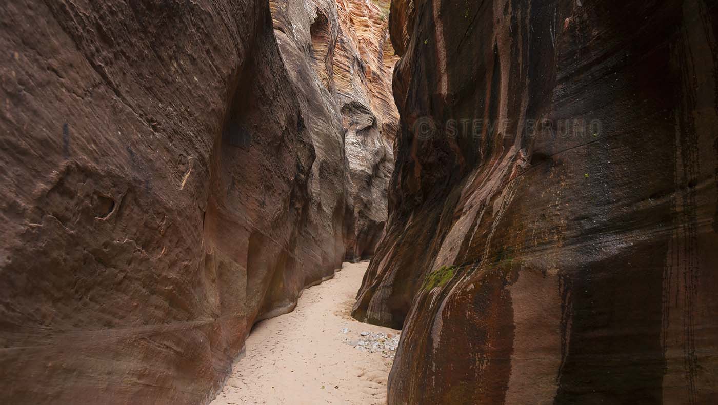 I’ve hiked many miles, and early on I discovered I preferred canyon hikes over those on a mountaintop or ridgeline. It’s not just about having shade or water, but more of the adventure of coming around a corner and being amazed with something unexpected. And while canyon exploring tops my list, some canyons are more memorable. Those are the ones where the skies disappear and I might have to take off the pack and step sideways for a moment or two. At that point, it’s hard not to feel enveloped in the land. Sometimes it’s challenging to find an angle to photograph these spots, because there’s no moving around for a better angle, and looking up just yields a washed out image. Whether it’s a slot canyon or just another thin slit in the earth’s crust, sunlight rarely penetrates to the bottom. If it does, the contrast is too much, so the best light is often reflected sunlight.