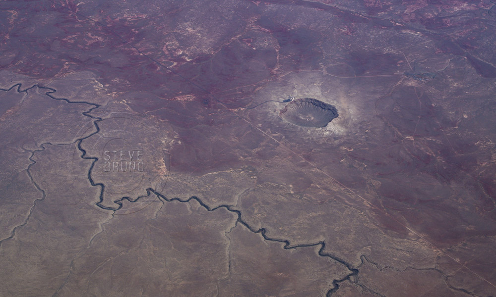 The next feature to come into view was Meteor Crater. It’s really hard to grasp the scale of the crater from the air, but perhaps the tiny roads will help.