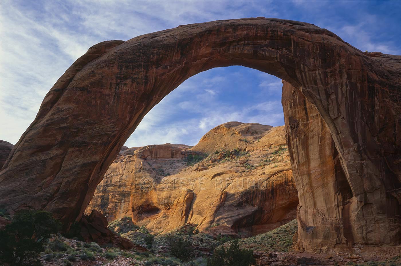 A little closer to present day we have the photograph below, taken in 1996. I had no intentions of duplicating the above photo. In hindsight, I wish I had taken one from near the same spot. If I had turned the camera the other way, you wouldn’t see much water. A small trickle and some pools in the creek bottom, and that was it. This time I hiked in, on what is one of my favorite hikes in the southwest. That’s Rainbow Bridge spanning the horizon.