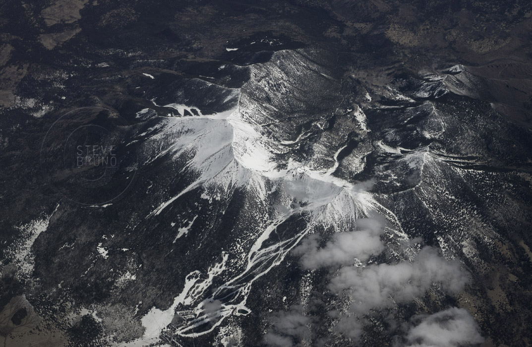 I’ve flown enough out of McCarran Airport to know the flight patterns towards every corner of the US, and earlier this month on my flight to Houston, we definitely started off course. I figured the pilot would make an adjustment, but we seemed to stay further south than all the previous flights to the southeast. I was enjoying the slight change of scenery, and one of the first things to get my attention was patterns of the Mojave Desert (above). As we approached Flagstaff, I knew we were still on a southern course because the San Francisco Peaks were visible out the left side windows. They had just received a late spring coating of snow. The Arizona Snowbowl looked as though they could still have been skiing, but I’m sure it was past season.