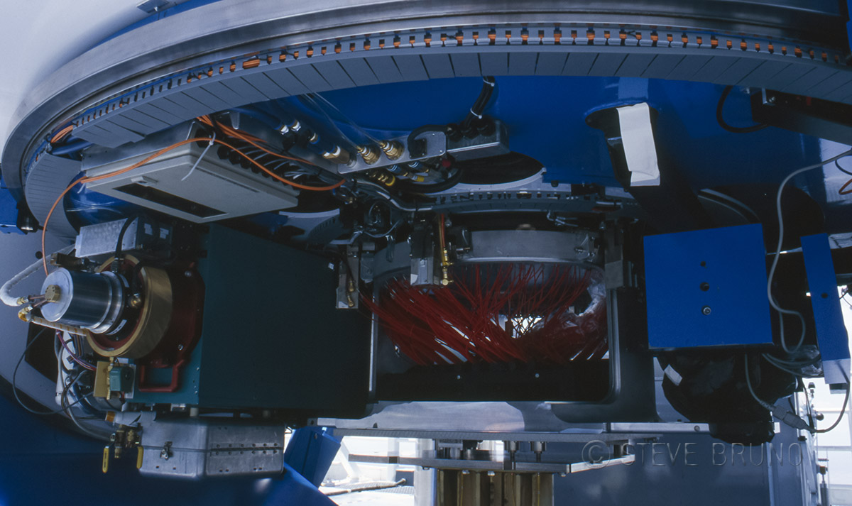 The underside to a modern telescope – no eyepiece here, just electrical components. Photo by Steve Bruno