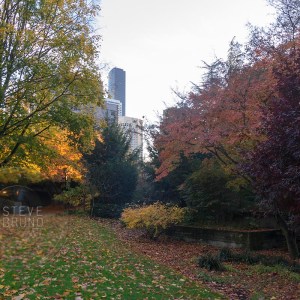 Full range of autumn colors in Freeway Park, downtown Seattle. Photo by Steve Bruno.