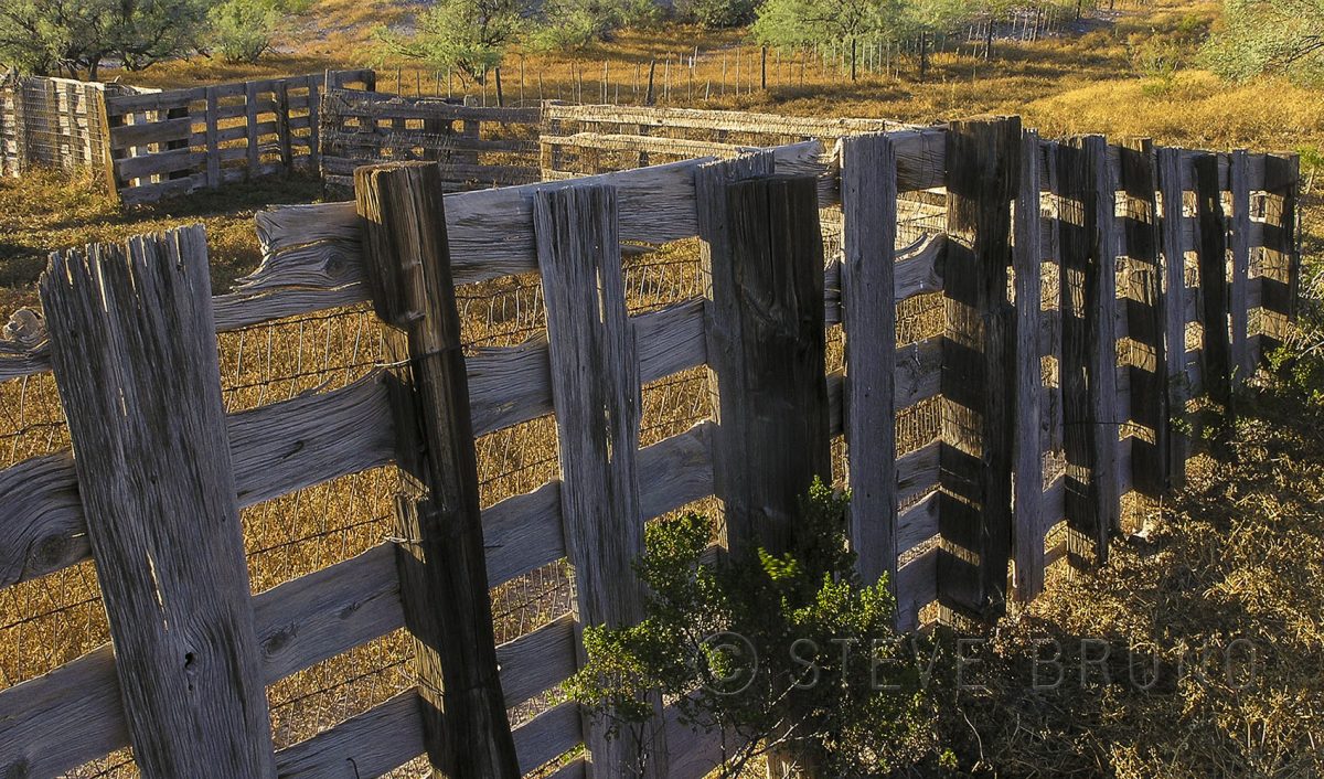Fence that once corralled the herd on an abandoned ranch in the desert of southeastern Arizona.