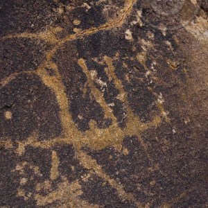 Strange markings on a boulder in the Newberry Mountains. Photo by Steve Bruno.