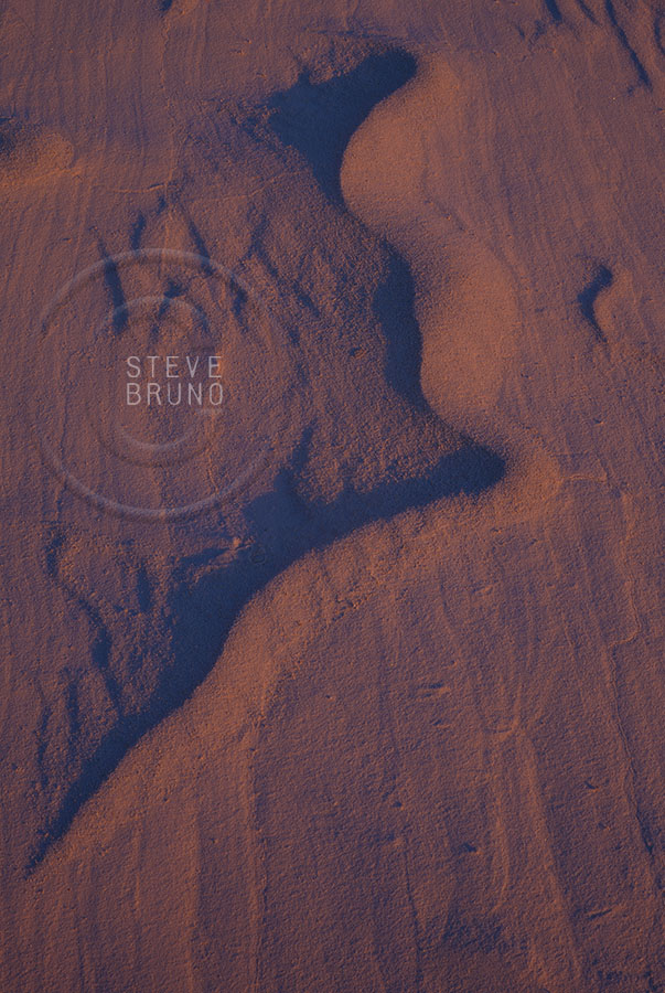 In White Sands National Monument, there are very hard packed gypsum flats within the dunes. A miniature (about 4 feet) dune had formed, resembling a snake on the dunes. Its detail was very pronounced at sunset.