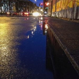 Rainwater starts to collect along the streets of Seattle. Photo by Steve Bruno.