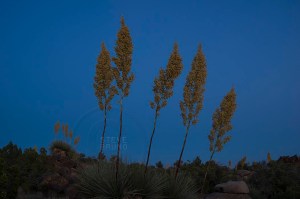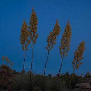 Late season bloom of yucca plants, as twilight approaches, in the Arizona desert by Steve Bruno