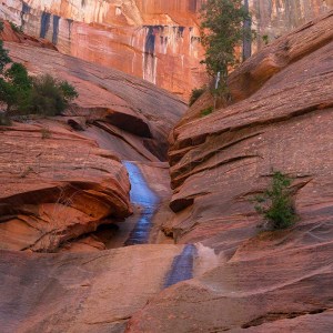 A trickle of water slides down wall of Taylor Creek Canyon, Zion National Park, Utah. Photo by Steve Bruno